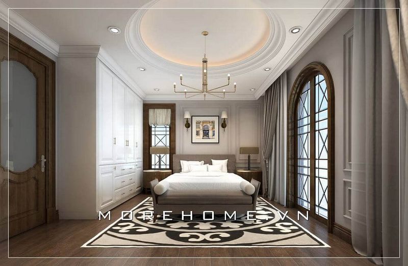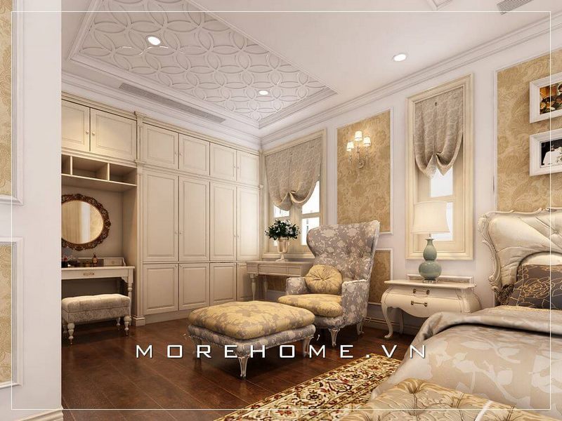 Mẫu thiết kế tủ quần áo phong cách tân cổ điển tại phòng ngủ Master biệt thự