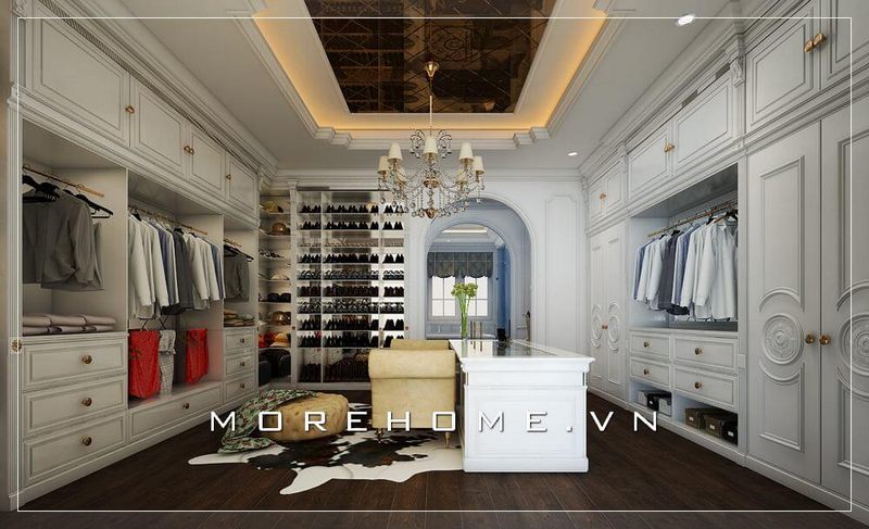 Thiết kế tủ quần áo phòng thay đồ biệt thự phong cách tân cổ điển, sang trọng