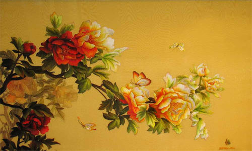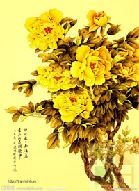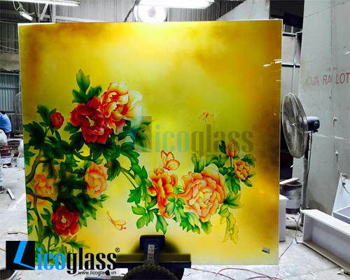 tranh kinh , tranh kinh hoa mau don , tranh kính hoa mẫu đơn , tranh kính nghệ thuật